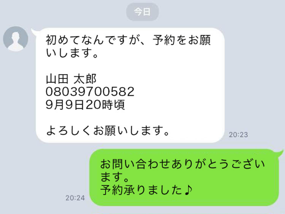 ご予約は、「LINE」または「お電話」にて承っております。